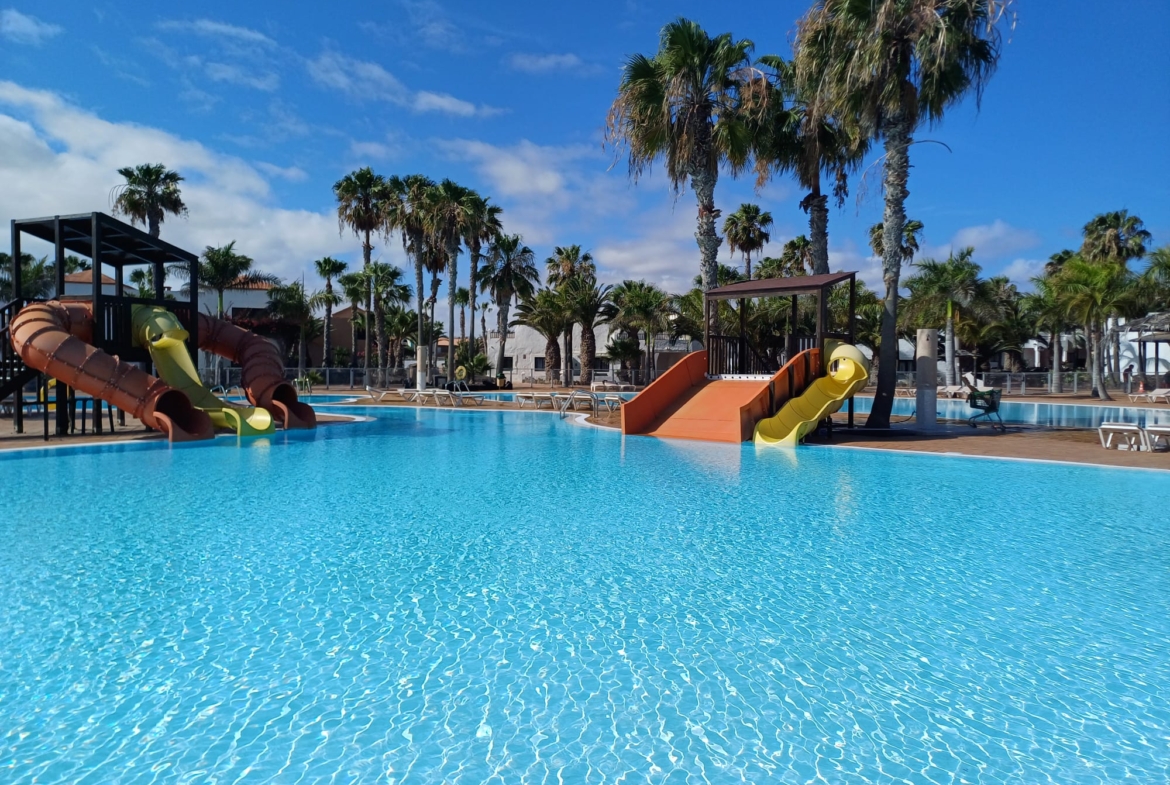 Die Anlage verfügt über 3 Swimmingpools, Solarium, Spielplätze und tropische Gärten.