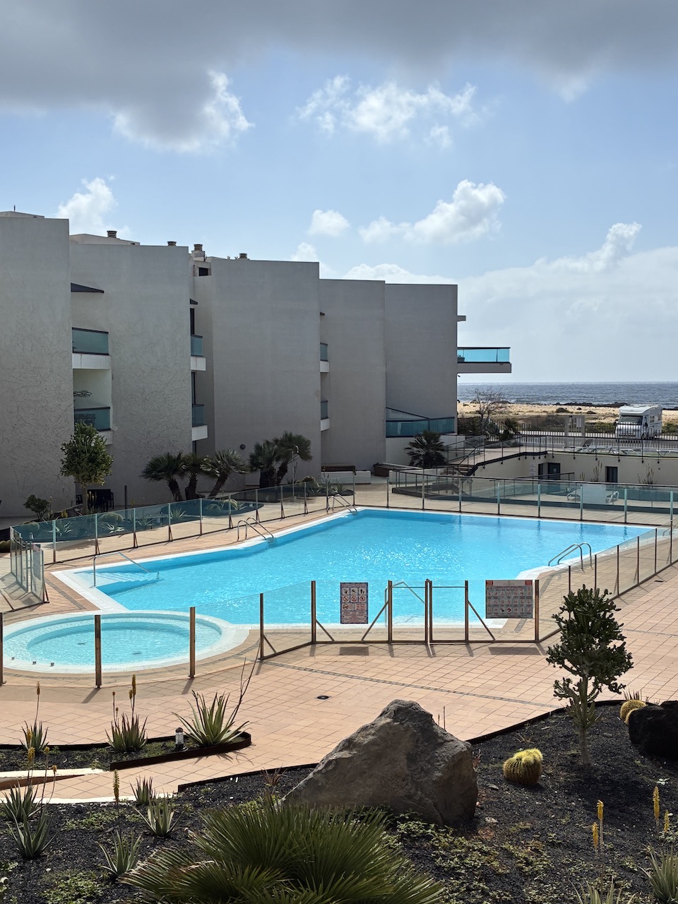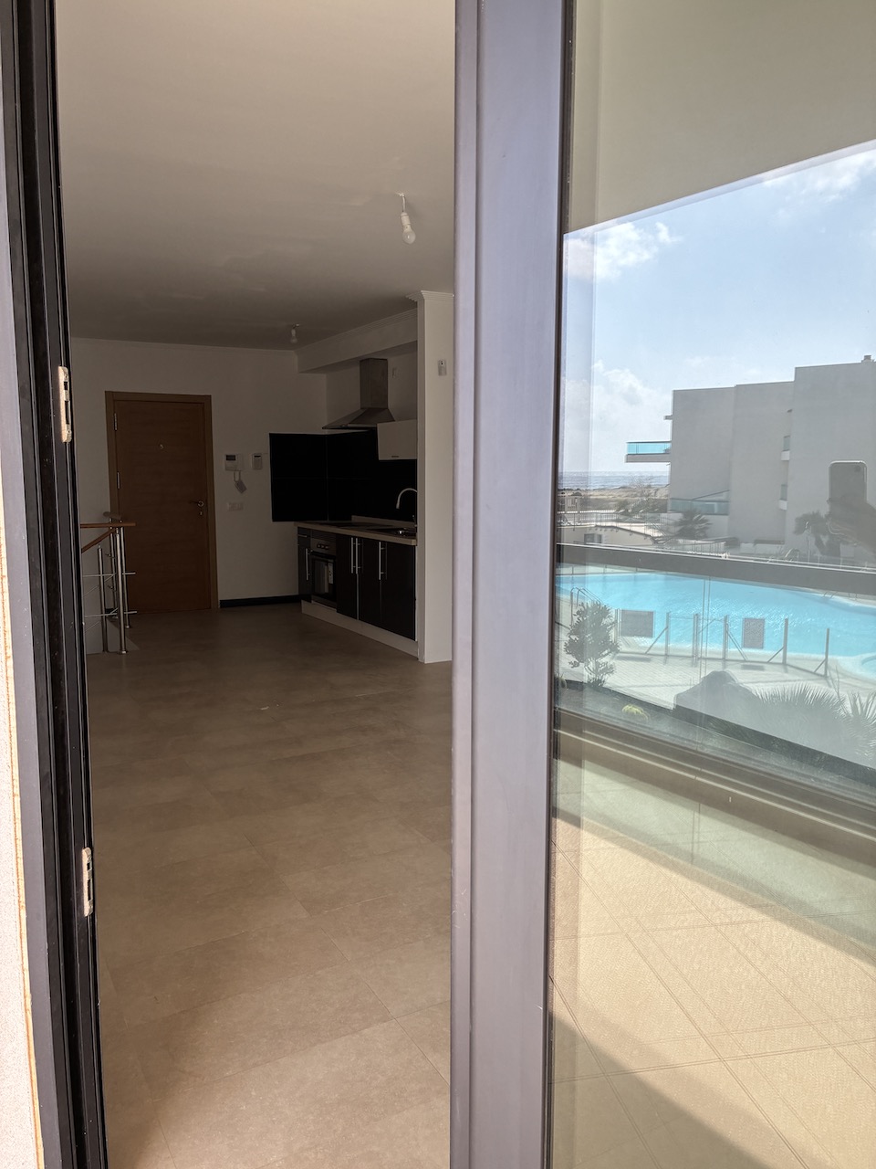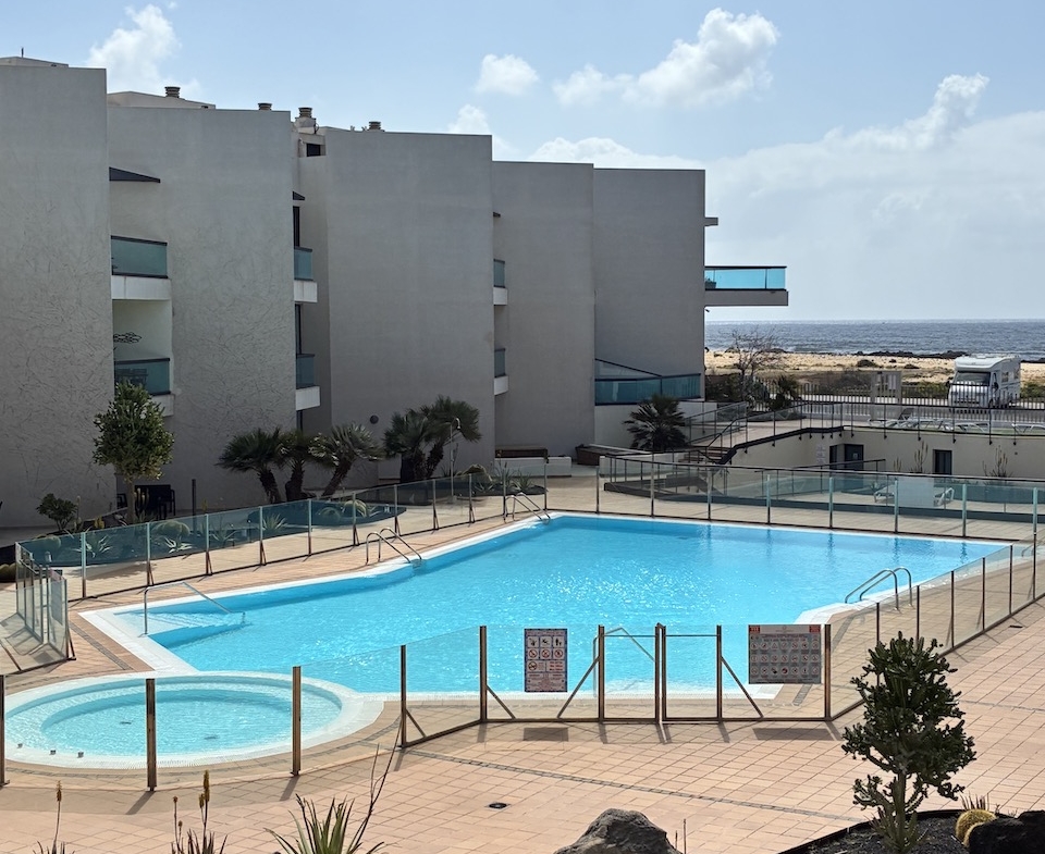 Life in El Cotillo moves at a gentler pace, where the rhythm of the ocean, unspoiled beaches, and soft coastal light create one of the most relaxed and authentic settings in Fuerteventura—and right here is where you’ll find Apartment 129 in Edificio Denébola. This well-designed duplex is arranged over two levels, with the upper floor acting as the social heart of the home, where a bright living space flows directly onto a south-facing terrace overlooking the pool and towards the sea—an inviting setting for outdoor dining or simply unwinding in the sun. This level also includes a double bedroom with built-in wardrobes and a bathroom.