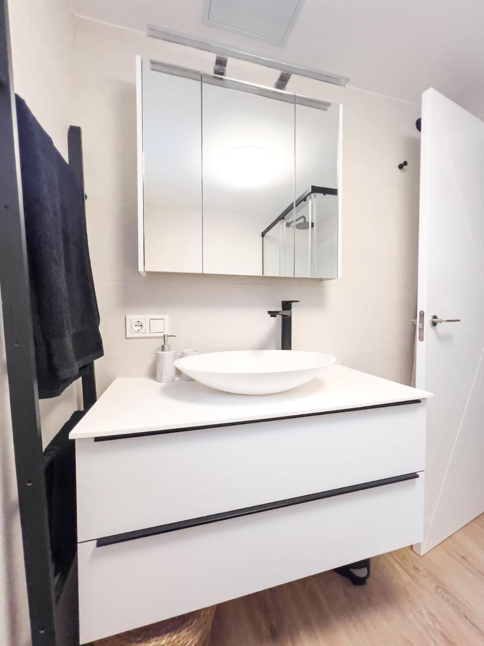 The house is distributed over two levels — a semi-basement and ground floor — and features three spacious bedrooms and two stylish bathrooms. It boasts a fresh, modern design with a bright white aesthetic that enhances natural light throughout.